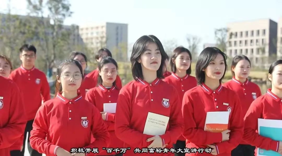 据悉,该宣讲团是国内高校首支大学生共同富裕宣讲团,首期在全校招录了20名青年大学生,专业包括经济学、法学、小学教育、汉语言文学、车辆工程、建筑学、服装与服饰设计、纺织工程等,由嘉兴学院中国共同富裕研究院研究员担任宣讲团指导教师,正在开展理论学习、实践调研等工作。