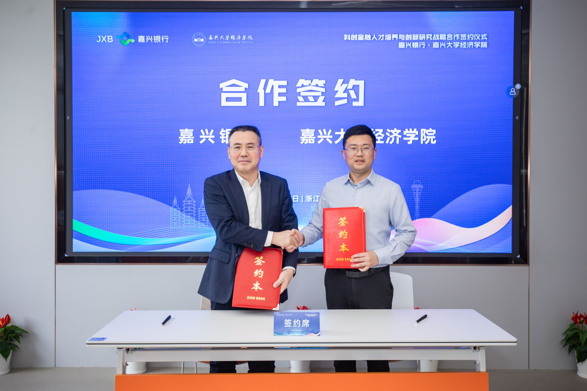 与嘉兴银行成功签署金融人才培养和科创金融研究战略合作协议。嘉兴银行党委副书记、行长章张海,党委副书记、副行长王芳,校党委副书记钱方明、副校长於建明,学院院长文雁兵、学院党委书记蔡运男等出席,学院党委副书记陈晶晶主持签约仪式。