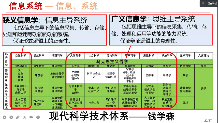 在“科技体系”部分,陆军从“人类文明史——信息系统发展史”导入,回答了“信息系统是什么?”“信息系统科技体系是什么?”两个问题,并从信息系统理论、信息系统技术与信息系统技术形态等三个方面进行了介绍。“今天的信息系统产业是综合电子信息系统,明天的是综合量子信息系统,后天的是粒子信息系统”,陆军认为,面向2035年的电子信息系统需要成体系布局综合电子、量子、粒子信息系统科技产业体系,建立“信息系统理论体系+技术体系+产业体系+标准体系”。因此,他表示,信息系统研究方面解放思想、创新理论、突破技术、工程实践、学科建设、人才培养任重道远。
