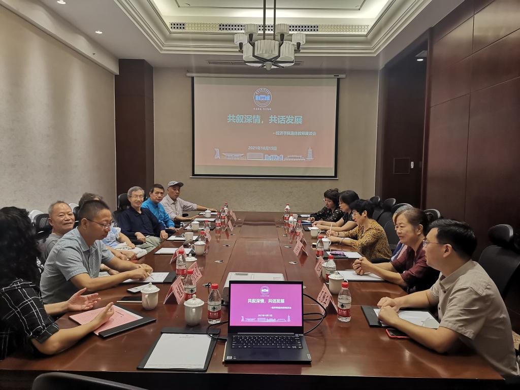 院长文雁兵向老同志们通报了学院发展近况以及“十四五”学院发展规划,表示自1984年经济系作为院系正式建制以来,尽管历经多次院系调整,但一任又一任的院系老领导、一批又一批的老教师为学院的发展、为专业人才培养,呕心沥血,做出了卓越的贡献,为学院的发展奠定了坚实的基础。手握接力棒,我们将不忘初心,砥砺前行,也请老同志们一如既往支持学院工作,为学院的发展提出宝贵建议。