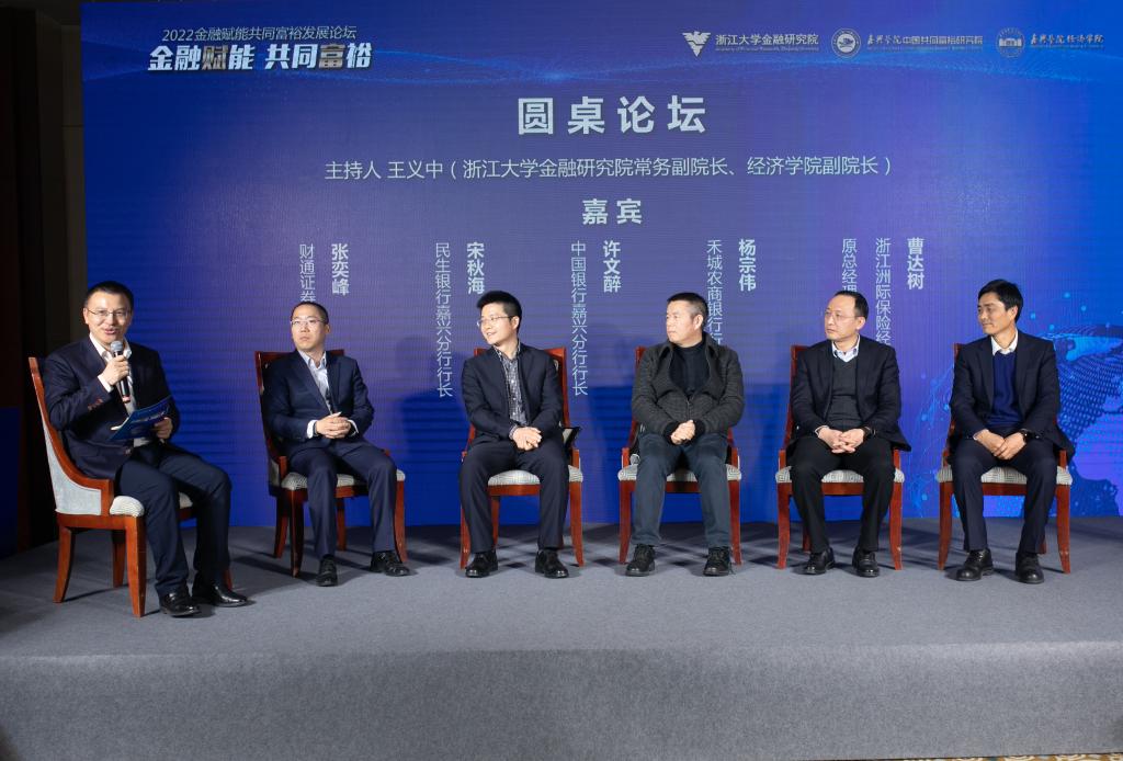 论坛圆桌论坛环节,浙江洲际保险经纪有限公司原总经理曹达树,禾城农商银行行长杨宗伟,中国银行嘉兴分行行长许文醉,民生银行嘉兴分行行长宋秋海,财通证券嘉兴分公司总经理张奕峰5位业界大咖分享了精彩观点。大咖们认为,行业赋能共同富裕要推动经济高质量发展,深化行业供给侧和需求侧改革,要创新金融产品和服务,满足民营企业发展和居民财富增长的需要。圆桌论坛由浙江大学金融研究院常务副院长、飘花电影