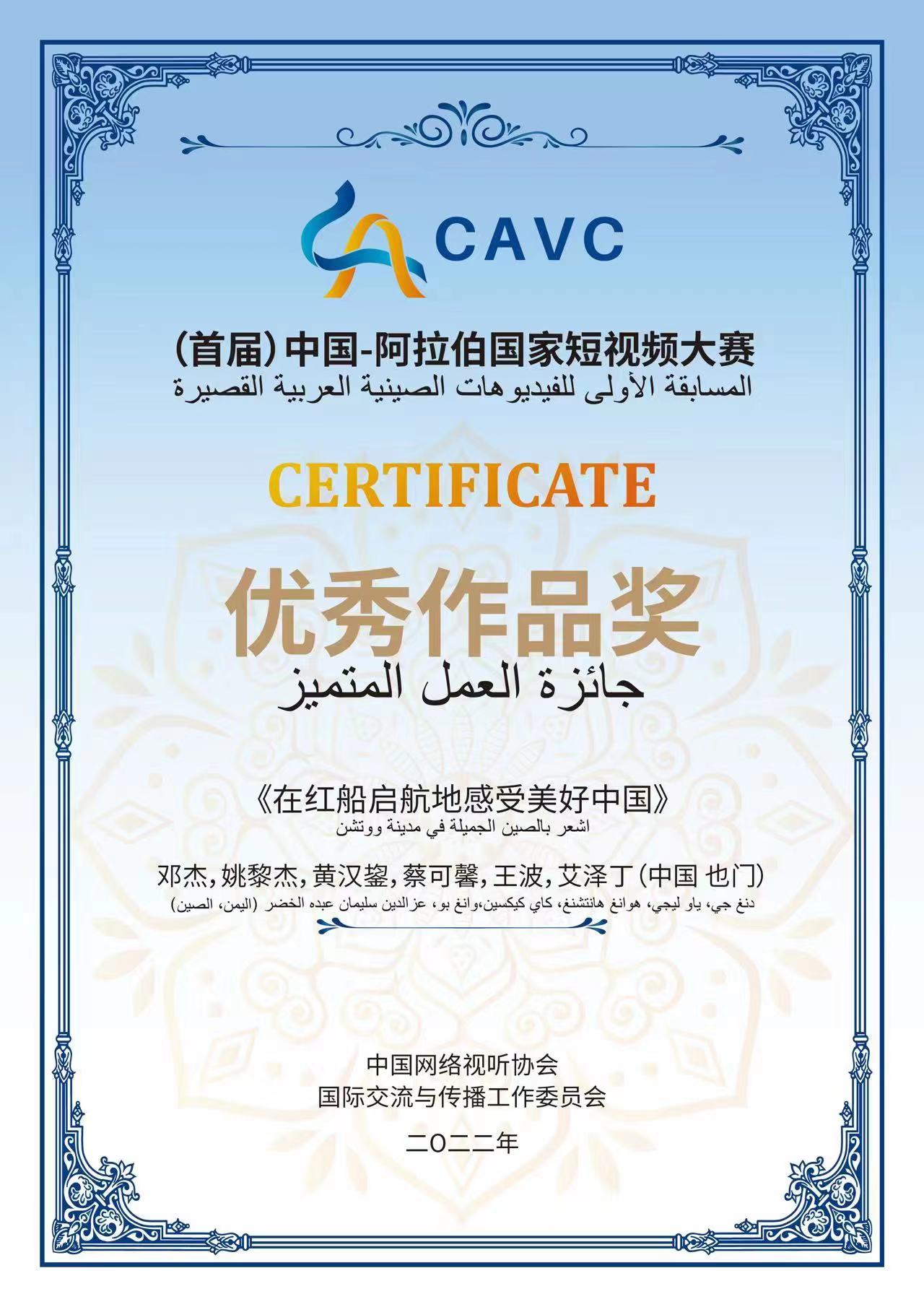 【经院喜报】飘花电影 2020级国际生获得(首届)中国—阿拉伯国家短视频大赛优秀作品奖