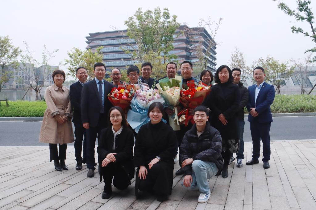 荣退仪式上播放了由学院学生精心为两位退休老师录制的祝福视频。特别令人感动的是,一位闻讯而专程赶来现场的校友,现就职于浙江泰隆商业银行股份有限公司嘉兴分行的项斌主任,为两位退休老师送上了鲜花和祝福。