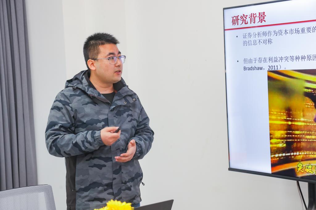 主题汇报环节4位青年学者做了精彩的学术报告。上财的吕晓亮博士利用蚂蚁集团暂停上市事件在网络社交媒体的反应大数据研究了经济主体间的隐性联系识别问题。