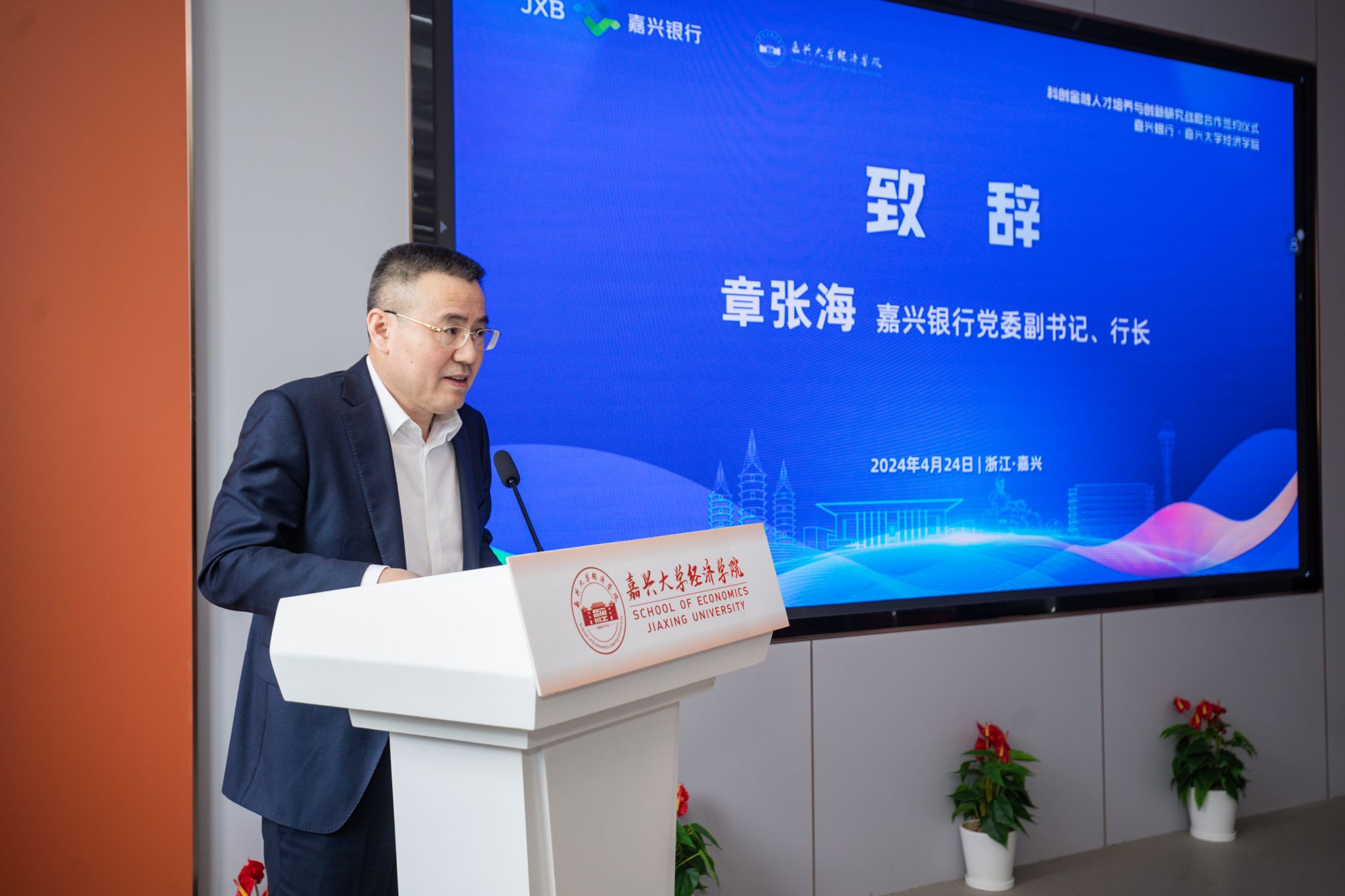 与嘉兴银行成功签署金融人才培养和科创金融研究战略合作协议。嘉兴银行党委副书记、行长章张海,党委副书记、副行长王芳,校党委副书记钱方明、副校长於建明,学院院长文雁兵、学院党委书记蔡运男等出席,学院党委副书记陈晶晶主持签约仪式。