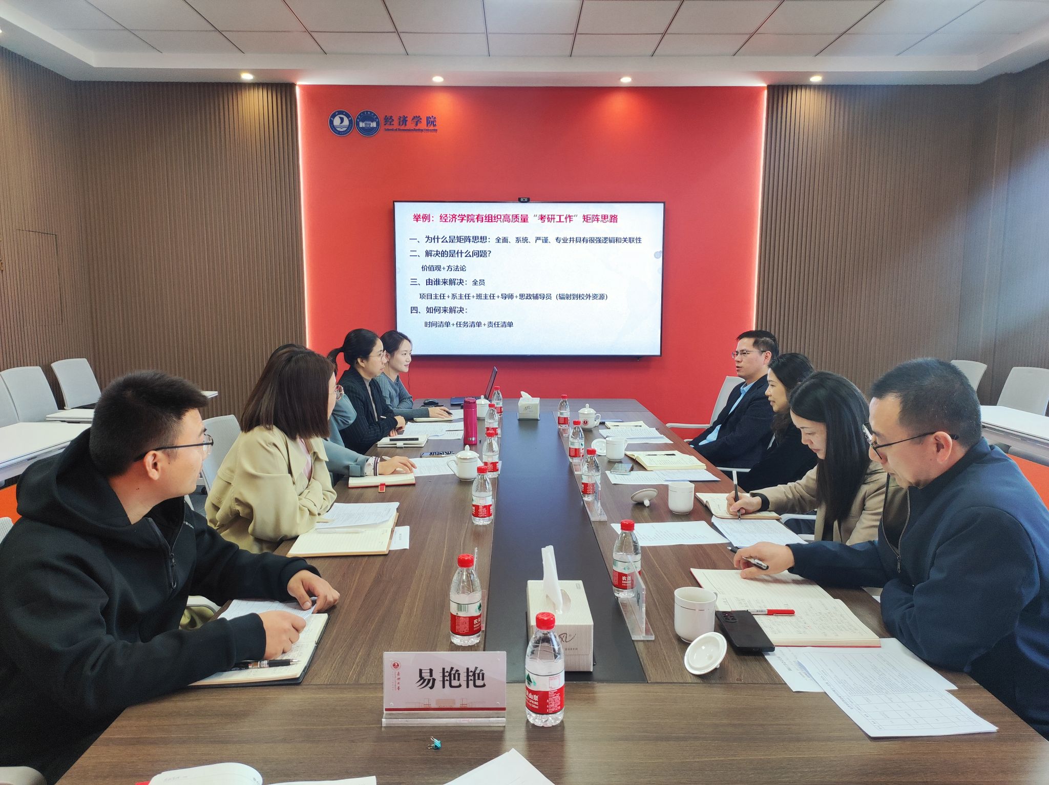 蔡运男围绕宣传思想、安全稳定等工作进行汇报,剖析现阶段存在问题并提出改进措施;陈晶晶就学生教育管理工作进行汇报,并就下一阶段工作重点和工作思路详细阐述。