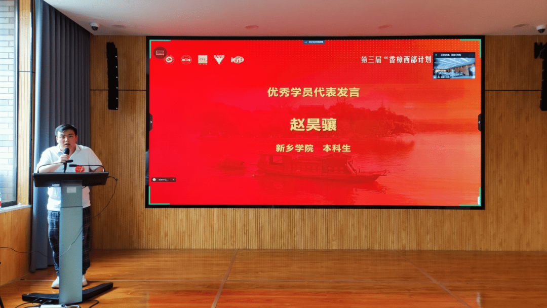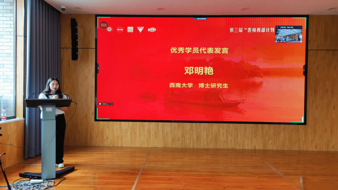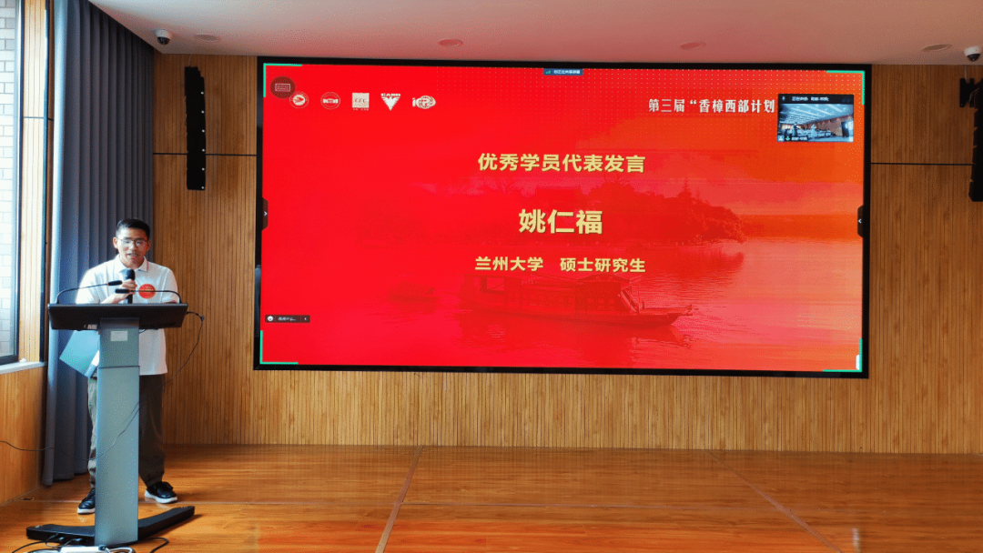 新乡学院本科生赵昊骧、兰州大学硕士生姚仁福、西南大学博士生邓明艳代表第三届“香樟西部计划”优秀学员发言。
