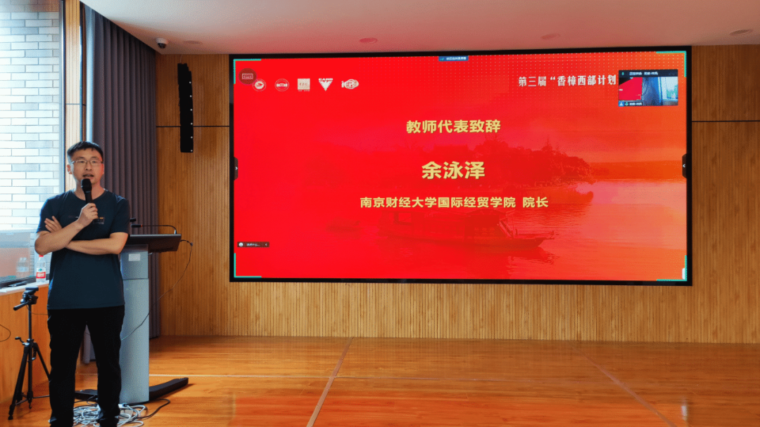 授课教师代表、南京财经大学国际经贸学院院长余泳泽教授对嘉兴学院为本届“香樟西部计划”暑期学校成功举办付出的人力、物力、财力表示感谢,对“香樟西部计划”暑期学校取得的初步成果给予了充分肯定。他表示,从“香樟西部计划”暑期学校第一届伊始就见证了许多学员在学术道路上的成长,甚至青出于蓝而胜于蓝。因此,他希望本届学员能够在后期学术研究中进一步提升学术水平,推动中国经济学术研究的发展。他强调,学术研究不能只停留在表面化的论文上,更重要的是为国家经济社会发展作出应有的贡献。