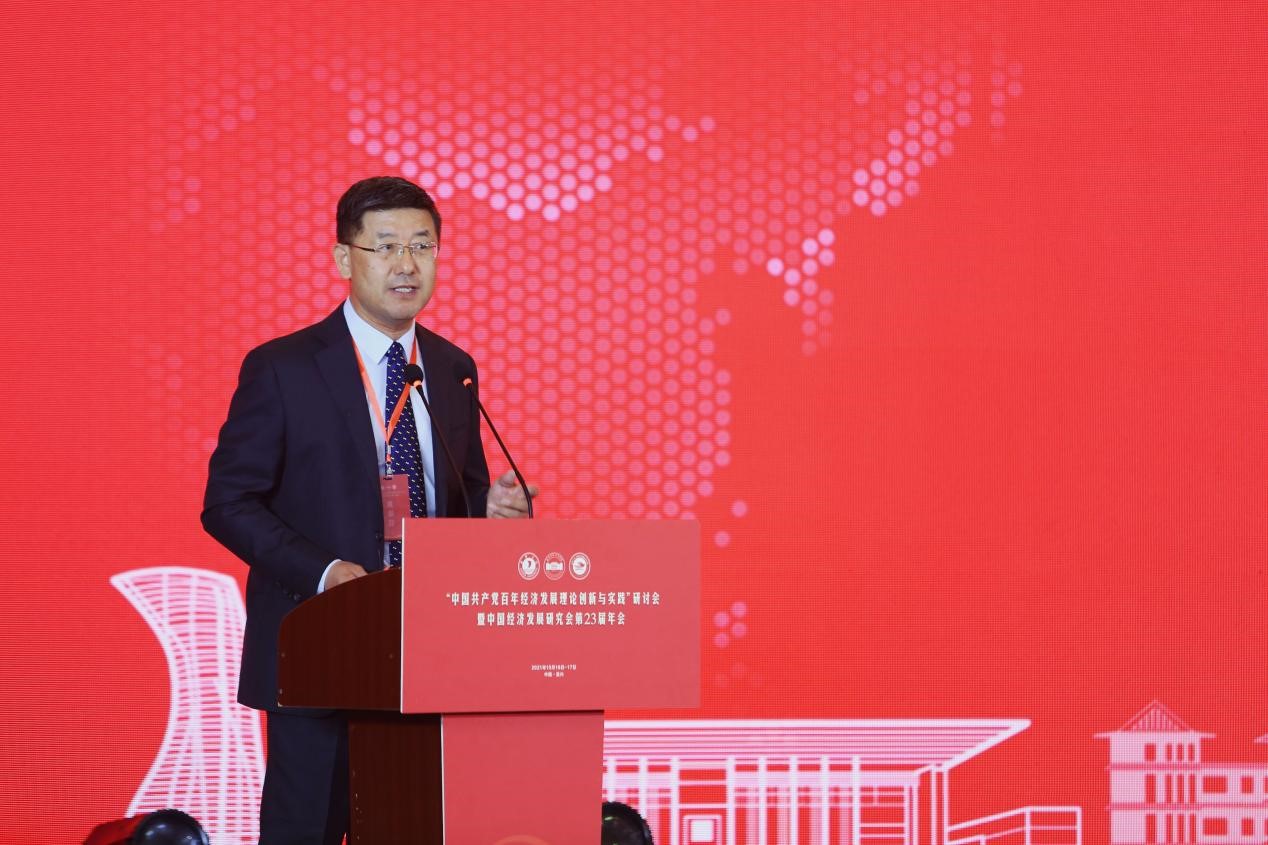 、中国共同富裕研究院联合承办的“中国共产党百年经济发展理论创新与实践”研讨会暨中国经济发展研究会第23届年会在浙江嘉兴成功举办。来自我校及中央民族大学、南开大学、复旦大学、南京大学、武汉大学、山东大学、四川大学、中国人民大学、西北大学、同济大学、西南财经大学等40多所高校百余名专家学者参会,围绕“中国共产党百年经济发展理论创新与实践”展开学术交流,为中国经济立足新时代、把握新阶段、构建新格局提供智力支持。主题发言环节,参会专家围绕年会主题做了精彩发言。本期刊登黄泰岩教授的发言内容。