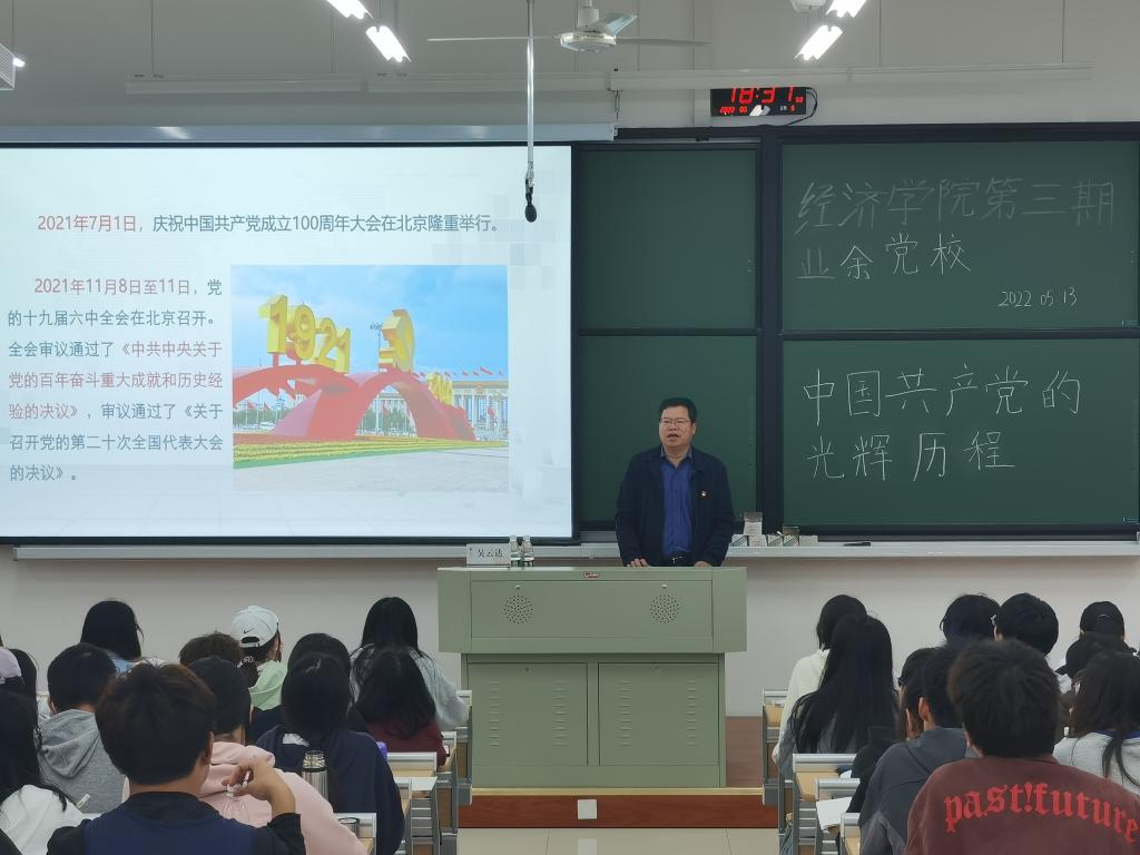 513日晚上,飘花电影 第期业余党校在明德楼236进行授课。嘉兴学院党委副书记吴云达应邀讲授题为《中国共产党的光辉历程》的专题党课。飘花电影 第期业余党校全体学员参加。