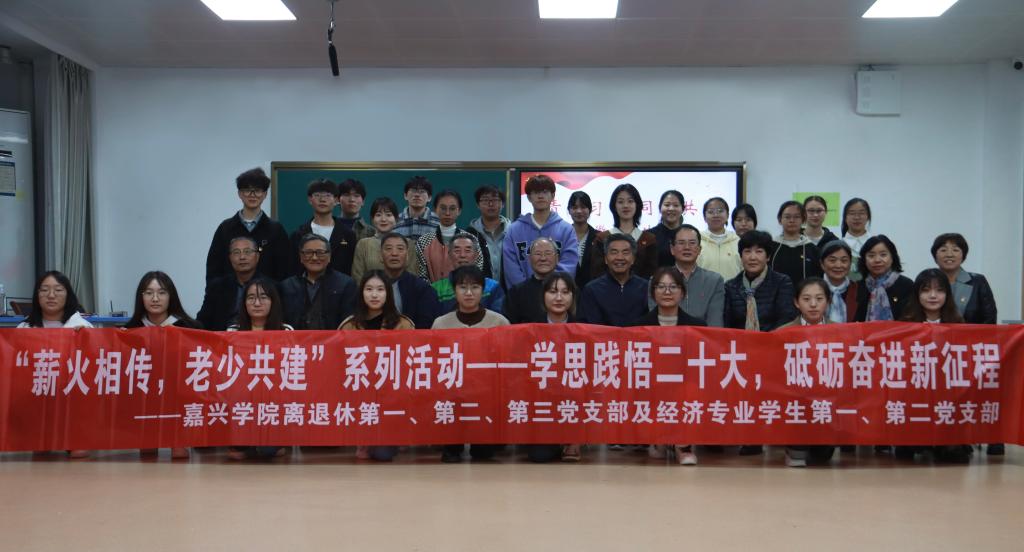2022年11月14日下午,经济专业学生第一、第二党支部联合嘉兴学院离退休第一、第二、第三党支部在兴礼楼210开展了以“学思践悟二十大,砥砺奋进新征程”为主题的党日活动。
