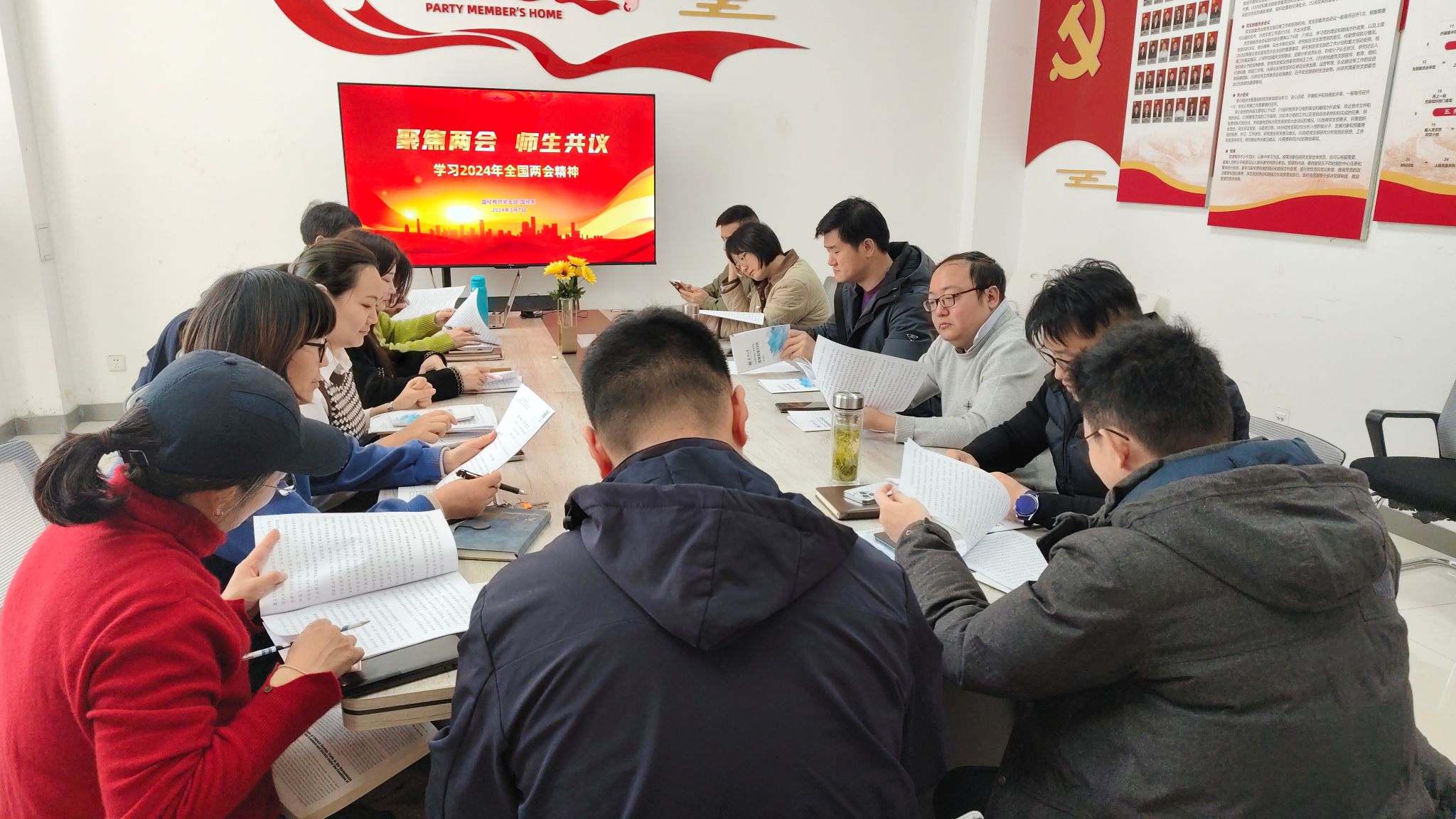 开展“聚焦两会 师生共议”专题学习交流活动,各系、党支部分别开展集体学习会。学习交流会上,大家首先原文学习《2024年政府工作报告》,围绕两会相关热点,结合自身学习、工作和生活的实际,热议两会精神。