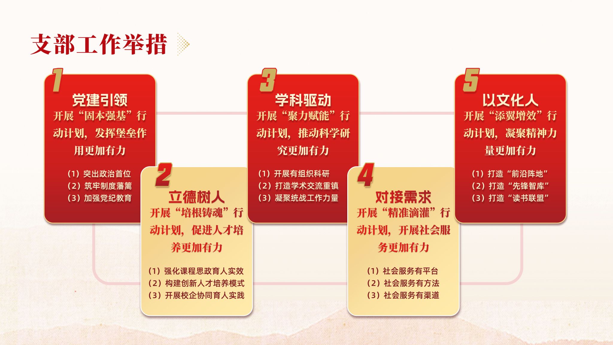 金融教师党支部是应用经济学学科建设、金融硕士专业学位点和经济类人才培养的核心力量。党支部坚持“党建掌舵、学科领航”双轮驱动,实施“固本强基、培根铸魂、聚力赋能、精准滴灌、添翼增效”五大行动计划,构建“1234”党建工作体系,做优党建引领、学科赋能、育人强基三大高地,努力实现党建高质量、学科高水平、育人高标准“三高”目标任务。